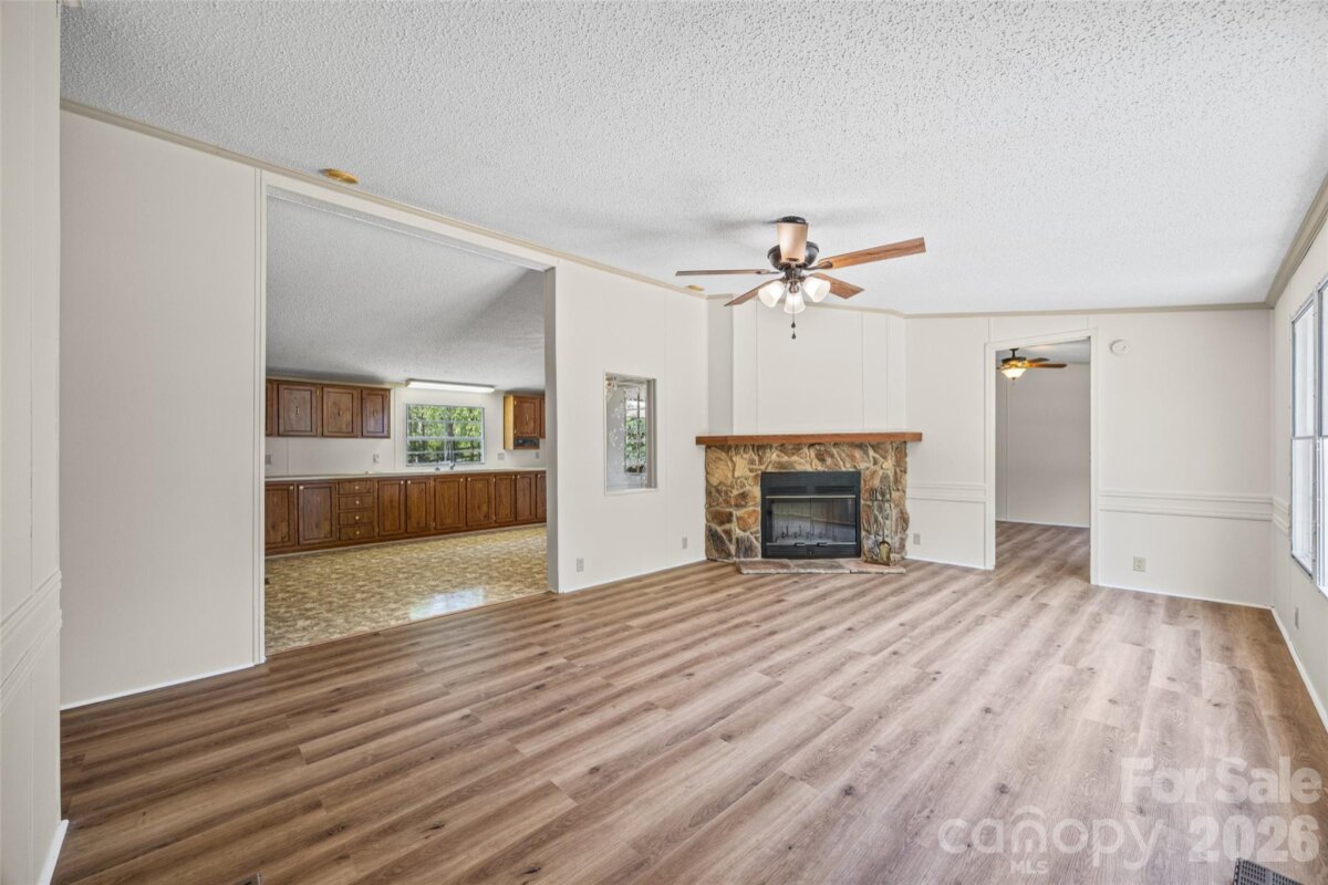 Enjoy the space and privacy of 5 beautiful acres in desirable Clover, where this 3-bedroom, 2-bath home offers a relaxed and comfortable setting within the award-winning Clover School District. The interior features a functional layout with spacious bedrooms, recently refreshed with new luxury vinyl plank flooring, a freshly painted interior, and a renovated guest bathroom. A cozy wood-burning fireplace creates an inviting focal point in the main living area. Step outside and take in the peaceful surroundings, perfect for morning coffee, outdoor exploring, or simply unwinding at the end of the day. With a blend of open space and everyday convenience, this property offers a great opportunity to enjoy quiet living without feeling far from it all. Bollinger Pond Dr is a private road with a 130 ft drive right-of-way, see attached plat.
