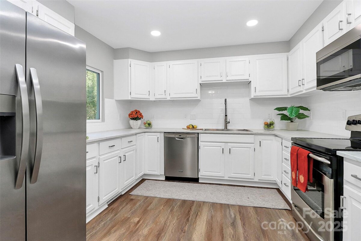 Stunning Golf Course Home in the Heart of Raintree! This beautifully updated home offers breathtaking and peaceful views of the golf course with a fresh, modern feel throughout. NO REMODEL SHORTCUTS TAKEN - Step inside to discover a complete transformation with a NEW Roof (25-30 year architectural grade shingles), NEW HVAC (Two heating and A/C units) - both fully passed inspection, NEW Windows (First Generation Vinyl - Professionally Installed), NEW Flooring Throughout - Ceramic in Bathrooms and LVP everywhere else, FRESH Paint Inside & Out, NEW Electric Fireplace in Living Room (produces enough heat and a/c for the entire room), NEW Commercial Grade Water Heater (Professionally Installed & Inspected by Meck County), NEW Outlets and Light Switches Throughout (Professionally Installed), Extra Driveway Concrete for additional parking space, and much more! Whether you're relaxing on the patio and enjoying your golf course views or entertaining in the open concept living area, this home offers the perfect blend of elegance and comfort. Don't miss the lower level with a bonus room, bedroom, full bath and outside access. With every detail thoughtfully updated, all that's left to do is move in and enjoy! This home qualifies for a waived initiation fee for Raintree Country Club (approx. $30K value)