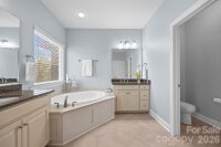 Stately full brick home with stone accents nestled on a quiet cul de sac street in highly sought after Eppington South. An elegant iron grill wood door at the entrance welcomes you home. An open floor plan with beautiful gleaming wood flooring and neutral paint throughout the main living areas. An abundance of windows allowing natural light radiates throughout the home, and the rounded doorways giving it a warm inviting cozy feel. The soaring two-story foyer features a stunning lighting fixture, decorative molding and a grand staircase creating a striking first impression of the home. The foyer opens to the dining room accented with a lovely coffered ceiling and decorative molding. Spacious great room with corner gas fireplace and ample windows with picturesque views of the backyard. The great room opens to the kitchen with a lovely rounded archway.The kitchen is a chef's dream - huge oversized island with decorative beadboard accents, ample seating and upgraded pendant lights, gas stove with hood, double oven, soft close kitchen cabinets & drawers, stacked cabinets accented with in-cabinet lighting. The butler's pantry, conveniently located within reach of the walk in pantry is equipped with plenty of cabinets and counter space for entertaining. The breakfast area - perfect for casual modern-day living completes the kitchen. Main level bedroom and full bath is perfect for guests or home office. Follow the sweeping staircase to the 1st landing, where you will find a huge bonus/rec room with plenty of storage. The 2nd landing leads to the private oversized primary ensuite featuring a coffered ceiling, walk in closet, dual vanities with granite counter tops, garden tub, tiled shower and separate water closet. Down the hall is a bedroom ensuite and 2 additional secondary bedrooms with a jack & jill bath, a convenient 2nd level laundry room with a utility sink. The outdoor living spaces create a seamless and relaxing private outdoor oasis. An inviting screened porch with skylights provide the perfect spot for morning coffee, afternoon reading or evening conversations. Beyond the porch is an expansive two-tiered patio. The upper level is perfect for grilling and alfresco dining. A few steps down is the perfect gathering spot centered around the built in firepit. Surrounding the firepit is a seating wall providing an open and welcoming feel. Tucked away under the porch are 2 hammock swings- the perfect spot for relaxing in your backyard oasis. As the day fades, the outdoor lighting transforms the patio space into glowing retreat. The yard has been lovingly manicured and perfected. It unfolds in beautiful succession as the year evolves. Close to I-77, restaurants, medical and shopping. It's more than a home- it's a lifestyle where timeless luxury meets private sanctuary.