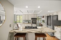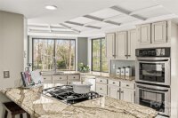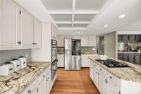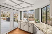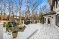 Stunning contemporary, mid-century modern home nestled on a quiet cul-de-sac in sought-after Matthews, NC. This beautifully maintained white brick residence offers 3,381 sq ft of thoughtfully designed living space on a generous .51-acre lot. Endless windows and tiered deck offering views of gorgeous private backyard filled with trees. The main level features formal living and dining rooms, a private office ideal for working from home, and an expansive kitchen designed for both function and entertaining. Highlights include a large center bar, walk-in pantry, and built-in desk space—all seamlessly flowing into the heart of the home with breakfast nook and cozy family room. Upstairs, you’ll find four spacious bedrooms, including an oversized primary suite with vaulted ceiling, a luxurious spa-inspired bath, and a custom walk-in closet. Each bedroom offers ample space and comfort. The garage has been converted into a climate-controlled exercise room with heating and cooling, providing flexible space to suit your lifestyle. Exceptionally well cared for and in excellent condition, this home blends modern style with everyday comfort in a peaceful setting. Excellent location with exceptional public schools; plus easy access to private schools, uptown, southpark, waverly, arboretum, and all things Charlotte.