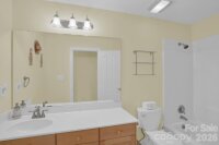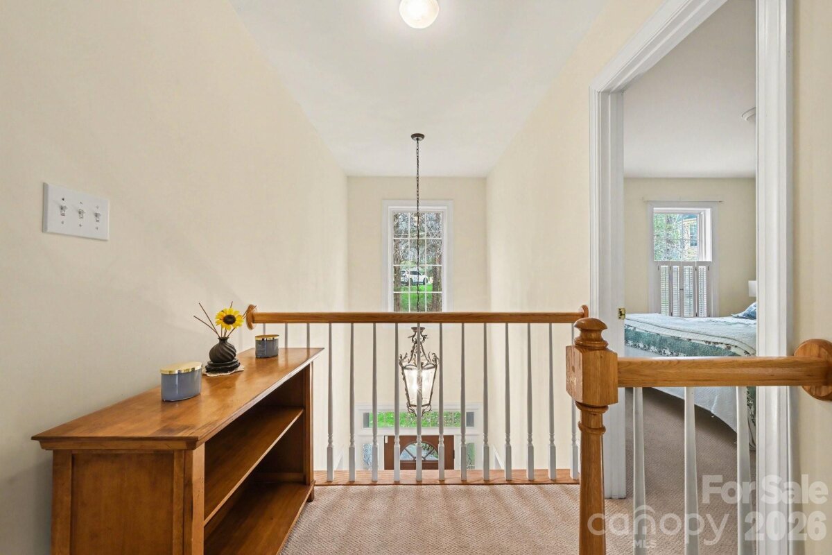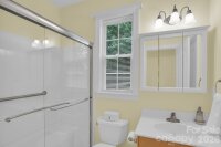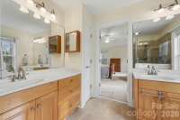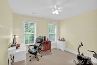 Tucked away on a peaceful cul-de-sac in Mint Hill, this full brick home sits on an impressive half-acre lot, offering the space, privacy, and timeless curb appeal the Oxfordshire neighborhood is known for. Ideally positioned with an east-facing front delivering bright and inviting mornings, a classic rocking chair front porch invites peaceful moments and provides the perfect place to enjoy the natural setting. Inside, the 2-story foyer creates a welcoming first impression and leads into a light-filled interior with hardwood flooring extending through the foyer, formal dining area, living room, and home office accented by French doors. At the heart of the home, the kitchen combines function and flow with 42-inch cabinetry, stainless steel appliances, a gas range, recessed lighting, a breakfast nook and bar-height seating, opening naturally to the rear deck for easy indoor-outdoor living. The backyard provides an outdoor retreat with mature trees and is fenced, creating both privacy and room to enjoy. Completing the main level is a guest suite with full bath — ideal for visitors or flexible living needs. Upstairs, the layout expands to include a freshly painted primary suite with tray ceilings, a bathroom featuring separate sinks and a large glass-enclosed tile shower, and a spacious walk-in closet. You'll find 2 additional bedrooms, another full bath, a laundry area, and an oversized bonus room with a loft - ideal as a 5th bedroom, media room, playroom, or fitness area. Fresh paint in the bedrooms, dining room, and primary bath makes this home truly move-in ready. Combining quiet neighborhood living with everyday convenience, this home offers quick access to shopping, dining, and I-485 while maintaining a relaxed, residential feel.