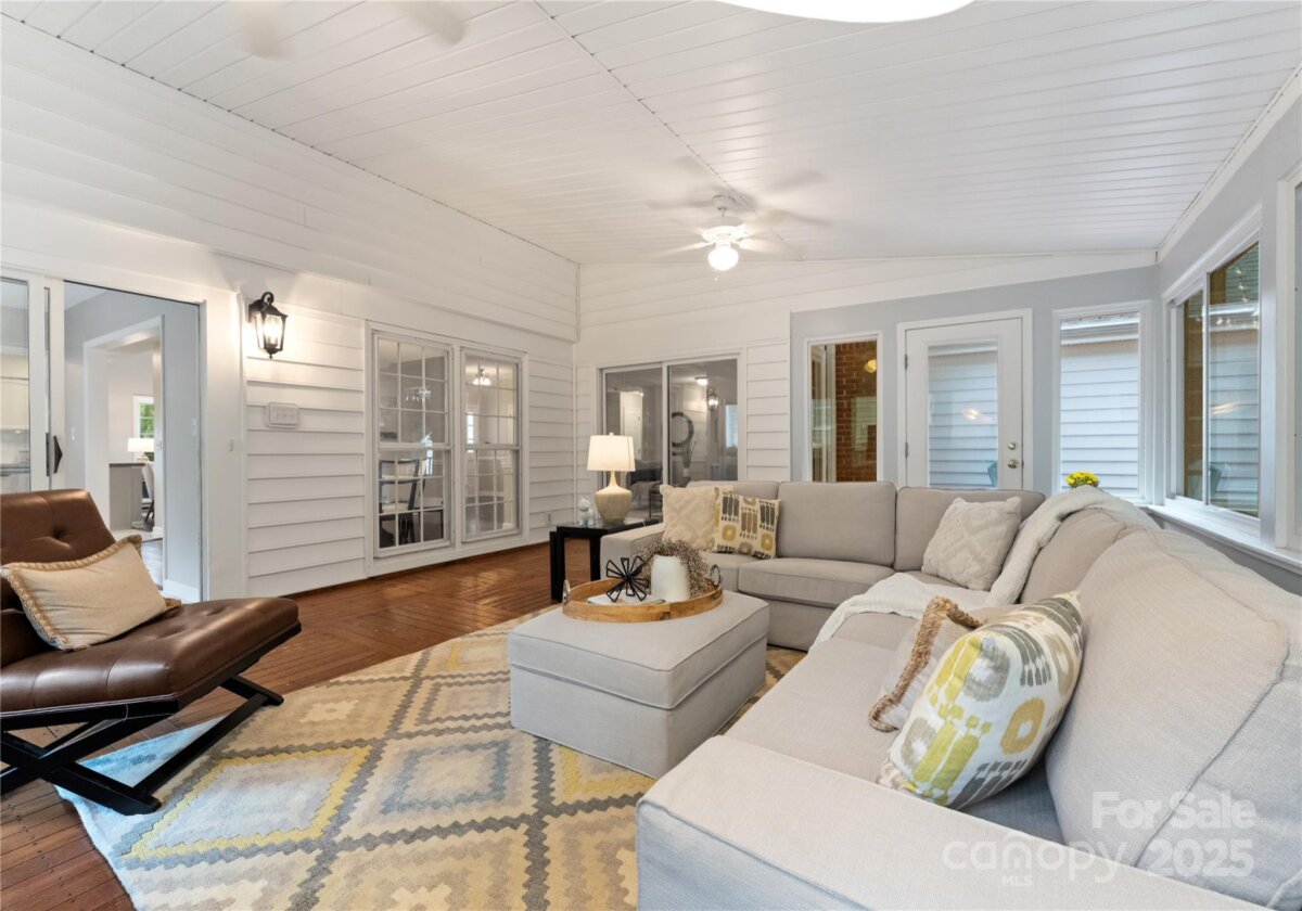Discover comfort and convenience in this charming ranch-style home, perfectly situated in a prime South Charlotte location. This residence offers a seamless blend of indoor and outdoor living, featuring a generous 349 square foot four seasons room that enhances the main level's living area. All living spaces are conveniently located on one floor, ensuring easy accessibility. The home boasts beautiful wood floors throughout, adding warmth and character. Enjoy the tranquility of a large, shaded backyard complete with a deck and stone patio, perfect for relaxation or entertaining. The fenced yard also includes a practical storage shed. Recent updates include a new roof installed in December 2022 and a HVAC system added in March 2022. Embrace sustainable living with the home's solar power system. Located just 250 feet from the Four Mile Greenway, this home is also within walking distance to popular spots like Trader Joe's or drive to the Ballantyne Bowl (via the Greenway) and Stonecrest making it an ideal choice for those seeking a vibrant community lifestyle.