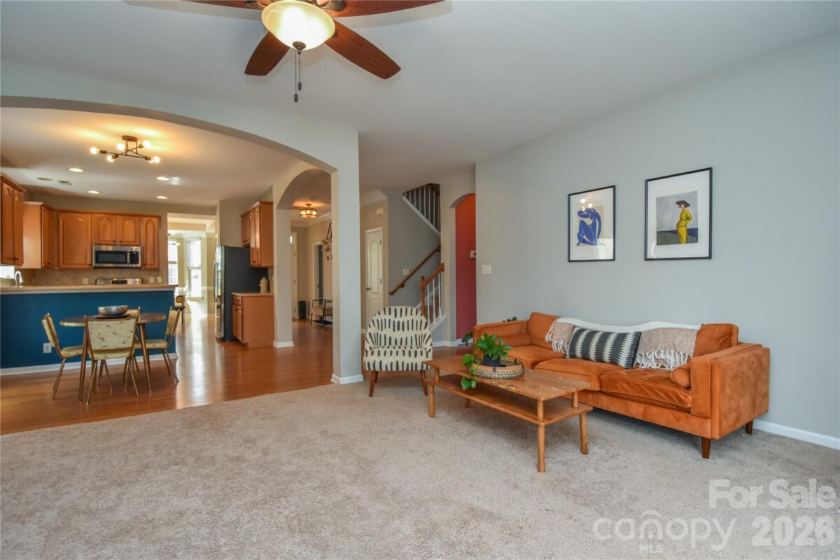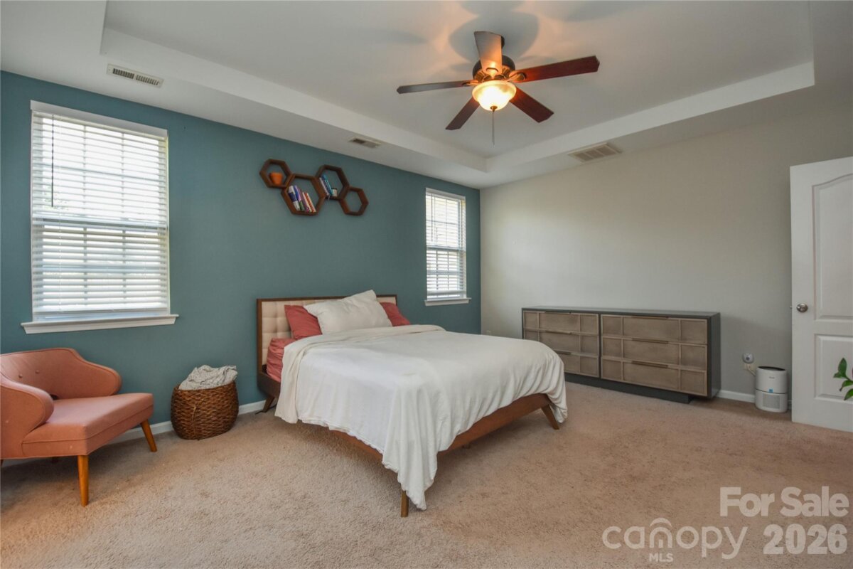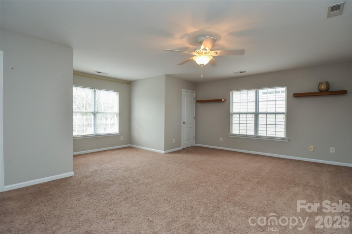 Located in the highly desirable Village of Rosedale, this beautiful home offers 5 bedrooms, 3.5 bathrooms, and over 3,200 square feet of living space with an inviting open layout featuring hardwood floors throughout the main level. The spacious great room with a cozy fireplace flows seamlessly into a bright sunroom, creating the perfect setting for relaxing or entertaining. A formal dining area adds flexibility for gatherings and special occasions. The main-level primary suite provides a private retreat with a generous walk-in closet and en suite bath. The kitchen is well-appointed with 42" maple cabinetry, Corian countertops, and stainless steel appliances. Upstairs, you’ll find four additional bedrooms, including one with a private en suite bath. A large bonus room—complete with multiple closets and walk-in storage—offers endless possibilities for a media room, playroom, or home office. Set on an oversized lot, the home boasts a spacious backyard and patio ideal for outdoor living. The community features amenities such as a pool and playground, and the location offers easy access to I-77, nearby shopping and dining, top-rated schools, and the Charlotte Greenway trail just a short stroll away.