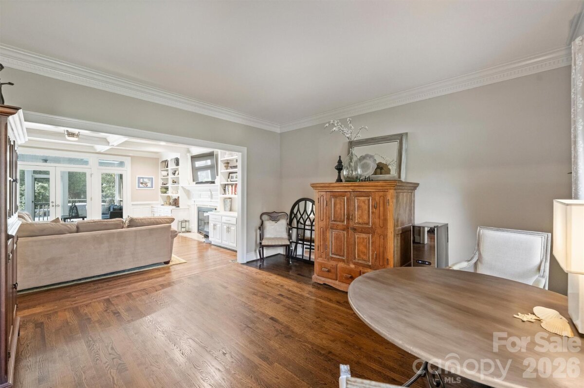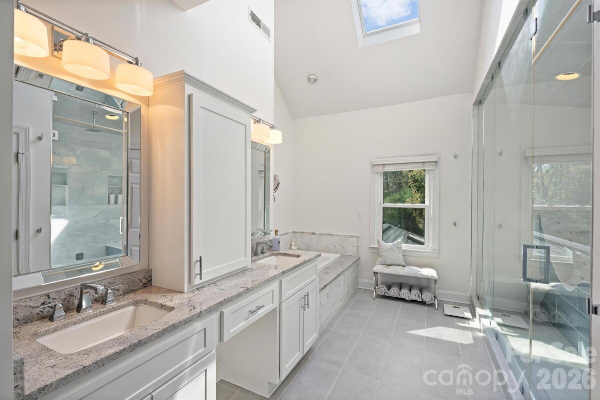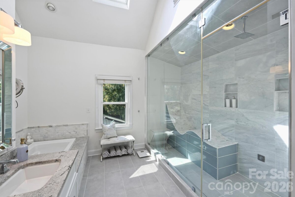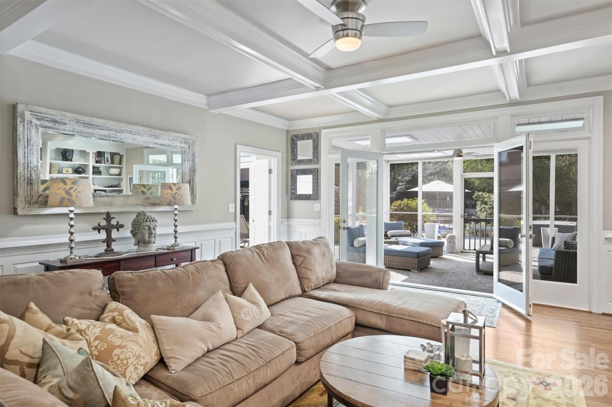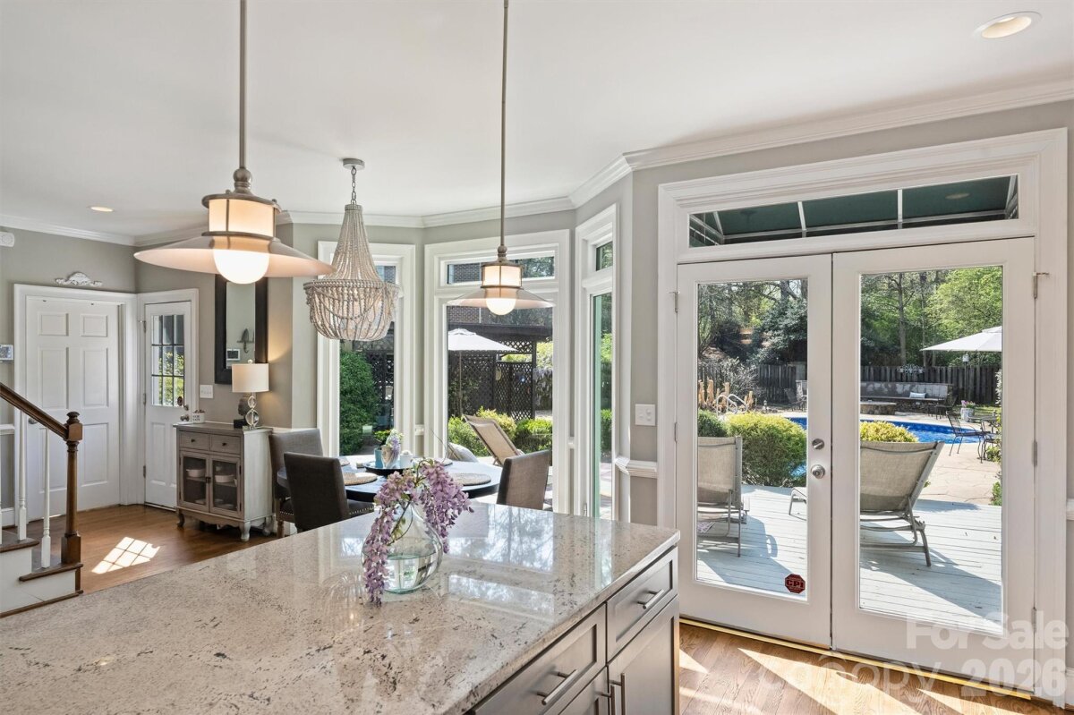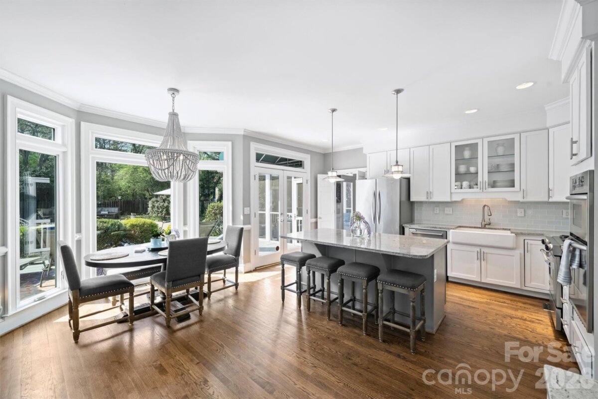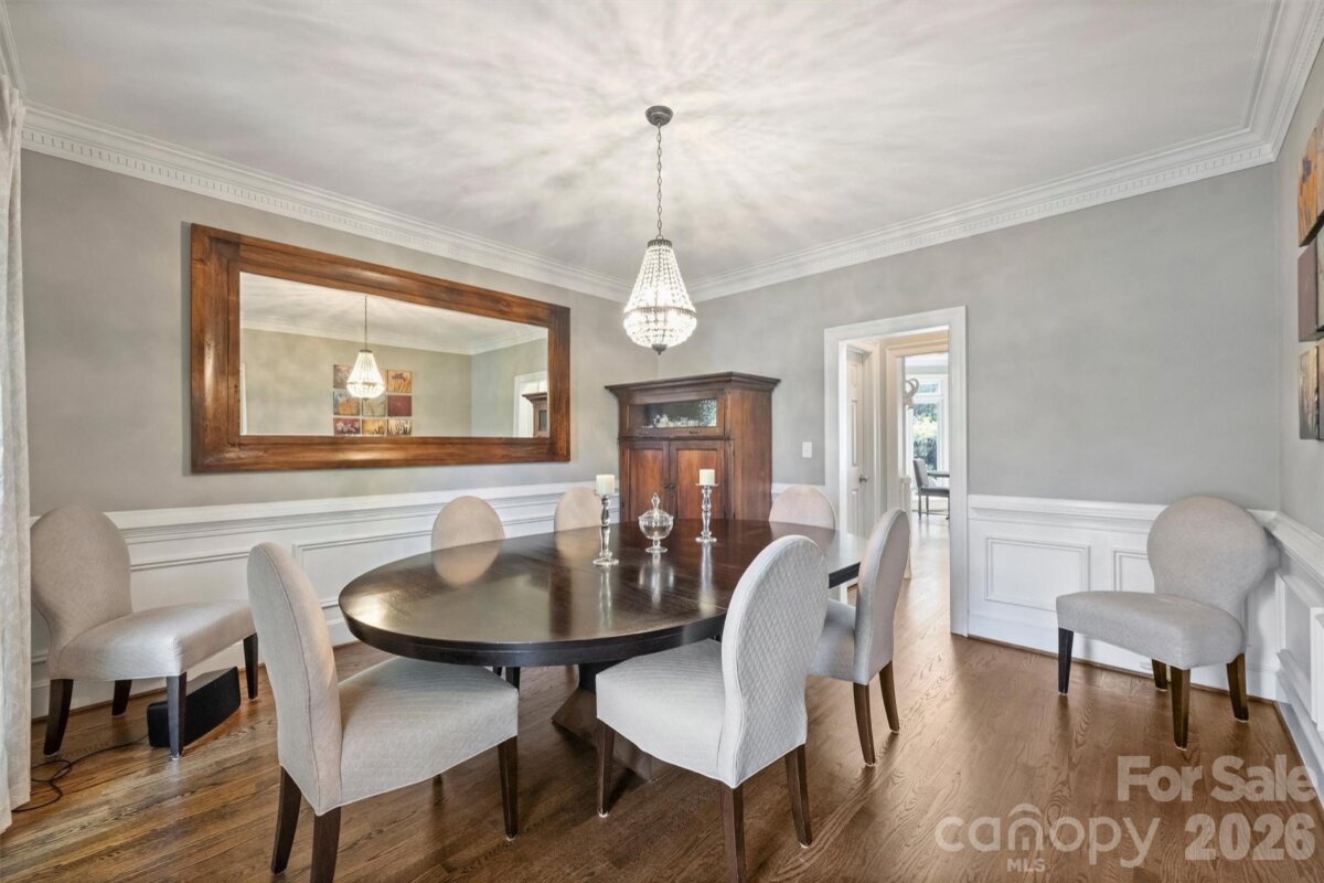 Welcome home to your private oasis! Nestled in the Balmoral neighborhood of Park Crossing this stunning home features beautiful hardwood floors, coffered ceiling, elegant wainscoting, dental crown molding throughout the downstairs and a gorgeous kitchen which overlooks the dreamy private backyard. There you will find a large inviting inground heated pool, colorful mature plants and a firepit for those evening storytelling times. Relax on your comfortable screened-in porch or soothe those muscles in the nearby Jacuzzi hot tub. The primary bathroom includes an incredible ThermaSol sauna steam shower and a high towering ceiling well lit by the skylight overhead. The primary walk-in closet is massive and has lots of natural light penetrating through the window located inside. A fixed staircase leads up to a large attic with tons of storage space - no pulldown stairs! All windows throughout the house were replaced in 2022. Park Crossing is one of Charlotte's most desirable neighborhoods for so many reasons. Residents enjoy access to the Little Sugar Creek Greenway to enjoy a peaceful stroll or hearty run through the beautiful natural areas. Conveniently located close to Southpark and just minutes from I-485.