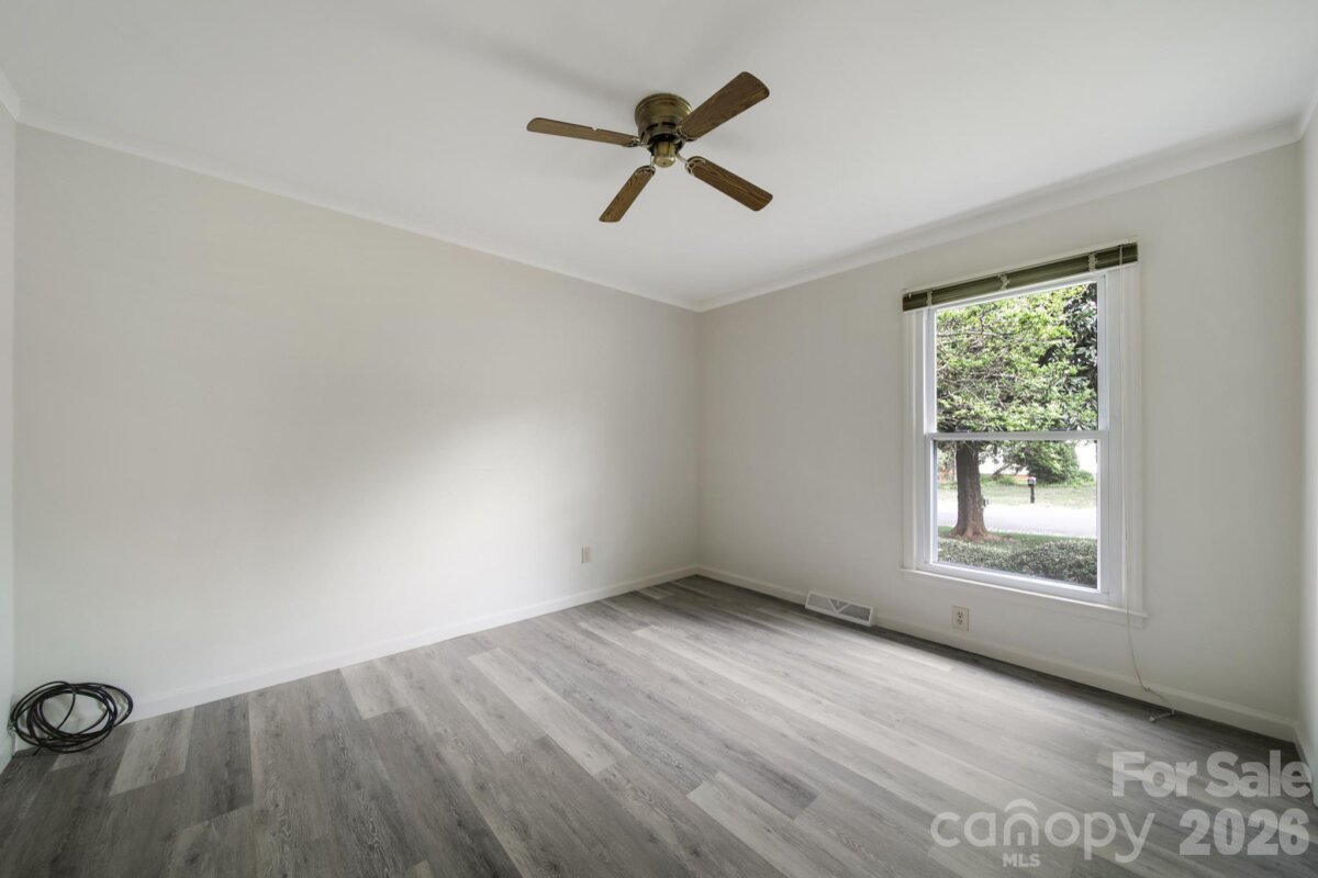 Welcome to this charming one-story RANCH home nestled on a premium corner lot, shaded by mature trees and landscaping, in the desirable Timber Creek community of Mint Hill. Freshly painted, brand new LVP flooring throughout the home and Turn Key Move-in READY! A welcoming foyer opens to a formal dining room - perfect for hosting gatherings or enjoying everyday meals. At the heart of the home, the open living room features a classic brick fireplace with a wooden mantel and offers relaxing views of the backyard, creating a warm and inviting space to unwind. The adjacent kitchen is both functional and cozy, complete with a gas range and hood, a convenient pass-through window, butcher block countertops and a sunny breakfast nook, ideal for casual dining. Tucked away at the rear of the home, the primary suite provides a private retreat with its own ensuite bath, including walk-in shower. Two secondary bedrooms are located at the front of the home and share access to a full hall bath -perfect for guests or flexible living needs. Step outside to enjoy the sizeable back deck, ideal for relaxing or entertaining while overlooking the backyard. Dual outdoor storage units add extra convenience and space for tools or seasonal items. As an added bonus there is a whole house generator conveying with the home. Timber Creek residents enjoy a peaceful neighborhood setting with easy access to shopping, dining, and everyday essentials, all just minutes away. NO HOA!