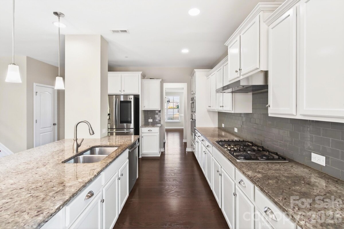 Welcome to 9650 Herringbone Lane NW — a spacious, light-filled home in one of Concord’s most convenient pockets, offering the kind of floorplan that truly works for real life. With 5 bedrooms and 3.5 baths, this home blends open-concept living with the bonus spaces everyone wants: a dedicated study, a tucked-away movie room, and incredible outdoor living that feels like an extension of the home. Inside, you’re greeted by an inviting entry and a main level that’s built for both everyday comfort and entertaining. A private study on the main floor (ideal for working from home) gives you a quiet place to focus while still staying connected to the heart of the home. The main living area opens up beautifully with great flow and natural light, anchored by a cozy gas fireplace in the family room. The kitchen is the true centerpiece—designed for people who actually cook and host. You’ll love the granite countertops, a large island with seating, and the upgraded cooking setup that makes meal prep easy. Just off the kitchen is that “extra†space everyone loves: a butler’s pantry / serving station area that adds cabinetry, counter space, and a perfect spot for a coffee bar, snack station, or party setup when guests are over. It’s a small detail that makes a big difference in how the home functions day to day. Upstairs, the primary suite feels like a retreat with generous space and spacious walk-in closets. The primary bath is designed to impress with dual sinks and a well-appointed layout that gives you room to spread out and unwind. Additional bedrooms are well-sized, with great closet space throughout. One of the coolest features of this home is how the upper level is laid out around the stair/loft area. Instead of everything being stacked in one hallway, you get a natural separation of spaces—plus a designated movie room that sits off the stair area, giving it extra privacy and a “closed-off†feel that’s perfect for film nights, gaming, or watching the big game without taking over the main living space. Step outside and you’ll see why this home stands out. The outdoor living here is next-level: a dual-level deck setup plus screened porches creates multiple zones for relaxing and entertaining. Host dinner upstairs, enjoy a quiet morning in the screened porch, and use the lower-level covered space for shade, hobbies, or weekend hangouts. The backyard is set up for fun too, featuring a built-in climbing wall and a dedicated kids’ play area—rare features that turn the yard into a true destination. The property is also equipped with a separate irrigation line servicing both the garden area and the underground sprinkler system, making it easy to maintain the landscaping and keep everything looking its best throughout the seasons. And don’t forget the welcoming front porch, adding that classic “sit and wave†curb appeal. Practical perks round it out, including dual A/C and heat for comfort across both levels. Location-wise, you’re positioned close to major shopping, dining, and entertainment with quick access to the main routes that connect you to Charlotte and the surrounding areas. The community will also benefit from the upcoming construction of Jim Ramseur Park, which will connect directly to the neighborhood—adding even more green space, recreation, and outdoor enjoyment just moments from your doorstep. Schedule your tour and come experience how much this home offers—inside and out.