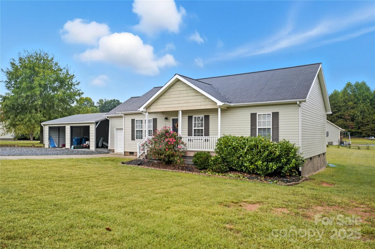 Welcome to this delightful 3-bedroom, 2-bath home nestled in the peaceful community of Russell Ridge. Situated on a spacious half-acre corner lot near a private cul-de-sac, this property offers both privacy and a sense of retreat. Step inside to discover vaulted ceilings that span the kitchen, breakfast area, and great room—creating an open, airy feel filled with natural light. The generously sized primary suite features its own private bath and a walk-in closet for added comfort. Outside, you’ll find a one-car attached garage plus a partially enclosed two-car carport, ideal for extra covered parking or storage. Located in a rapidly growing area, this home offers the perfect blend of country living with easy access to shopping, dining, and entertainment. The kitchen is equipped with Samsung stainless steel appliances, including a refrigerator, and the washer and dryer will remain with the home—making your move-in seamless. Listing agent related to owners.