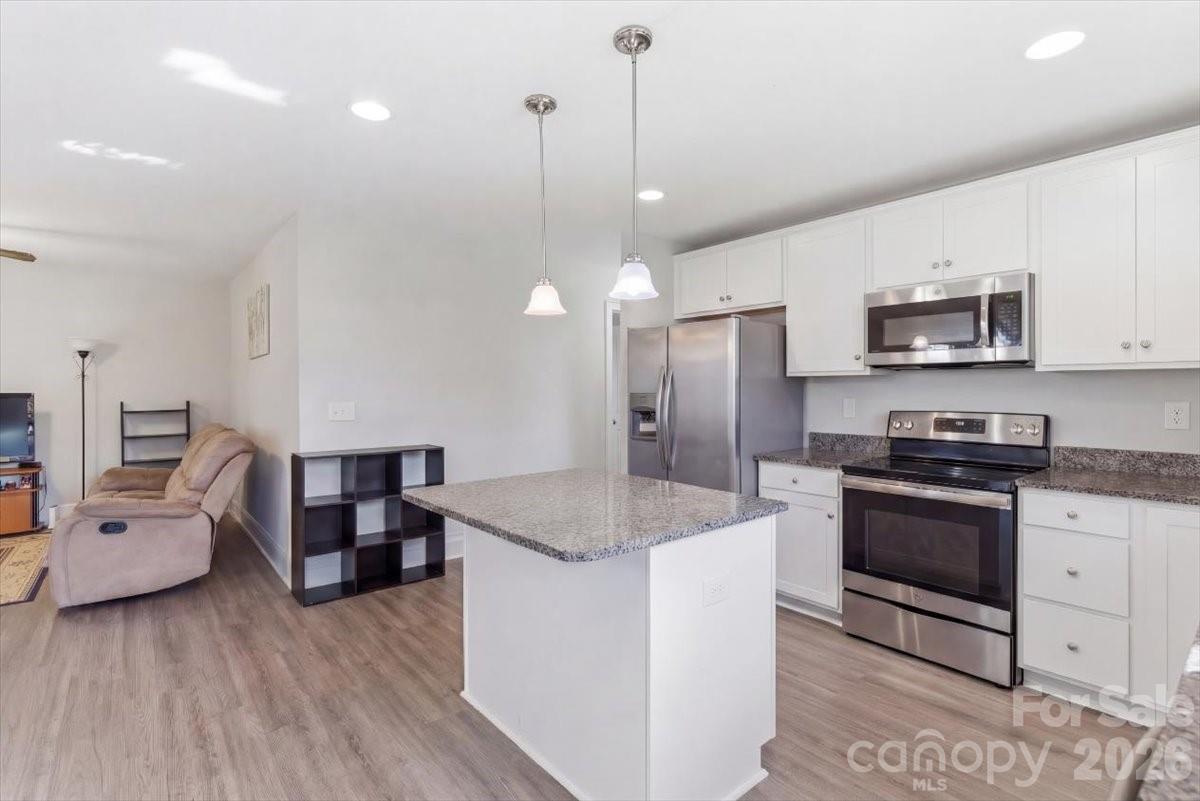 This beautifully crafted home is a great starter home for a growing family or an upgrade from a Townhome or an apartment. This home, in a quiet neighborhood has NO HOA, it offers an inviting concrete driveway, covered front porch, where you can enjoy Carolina evenings and an expansive backyard! This open floor-plan home offers the living room, dining room and kitchen in an open floor-plan so that entertaining is a breeze! There are matching stainless steel appliances, granite countertops, and an island with ample storage. Follow the hallway to the laundry room and the living quarters. The Primary room is spacious and offers an en-suite equipped with a vanity and combo tub/shower. Secondary and third bedrooms share the hall bathroom. Outside you'll enjoy the large backyard where you can add your personal outdoor furniture or play a game of volleyball.