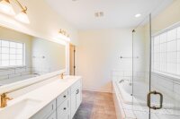Your dream home awaits in Ardrey Woods! This beautifully updated 5-bedroom, 3-bath home offers over 2,700 square feet of comfortable living, a 2-car garage, and not one—but two inviting porches. Perfectly situated on a rare cul-de-sac lot of nearly one-third acre, this property combines space, convenience, and low-maintenance living. Unbeatable Location: Just steps from highly rated schools and minutes to Blakeney shopping, dining, and more, this home puts you in the heart of one of Charlotte’s most desirable areas. Step Inside: You’re welcomed by a soaring two-story foyer with built in drop zone, flanked by a spacious dining room with tray ceiling—ideal for entertaining or easily repurposed as a home office or sitting room. Freshly painted with brand-new carpet throughout, the home feels light, bright, and move-in ready. Open-Concept Living: The kitchen is a showstopper with granite countertops, tile backsplash, stainless steel appliances, and gas cooking. It flows seamlessly into a sunlit dining area surrounded by windows and a cozy family room with a gas fireplace. A main-level bedroom and full bath add flexibility—perfect for guests, a hobby room, or a private office. Wood flooring throughout the main level. Upstairs Retreat: The oversized bonus/bedroom features charming built-in window seats with storage and a custom closet. Two additional bedrooms also include custom closets, maximizing organization. The primary suite is a true retreat, offering a tray ceiling, a spacious walk-in custom closet, and a spa-inspired en suite bath with a quartz countertops, soaking tub, dual vanities, tiled shower, and private water closet. Outdoor Living: Enjoy year-round comfort on the front rocking chair porch, rear expansive screened porch with high ceilings, relax on the paver patio, or gather around the fire pit in the large fully fenced backyard. A storage shed adds extra convenience. This home truly checks all the boxes—space, style, storage, schools, location, and all appliances are included. Icing on the cake: Community features an outdoor pool, walking trails, and playground. Don’t miss your chance to call it yours!