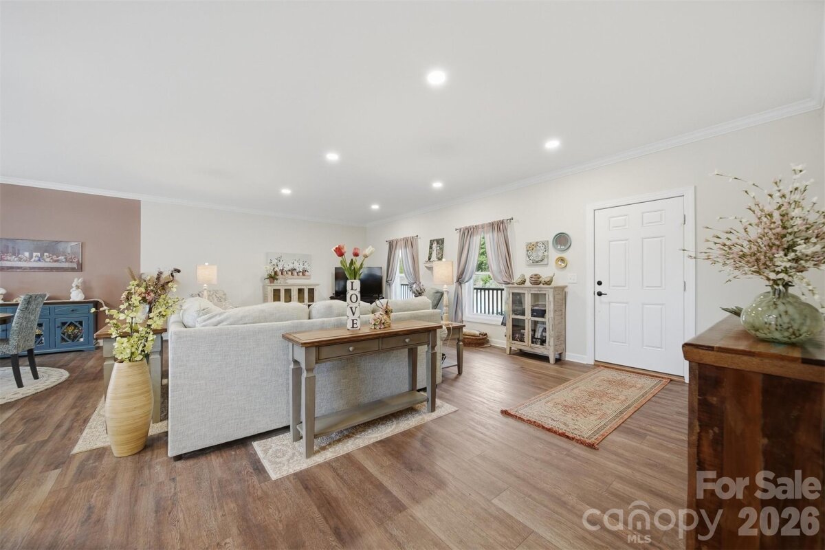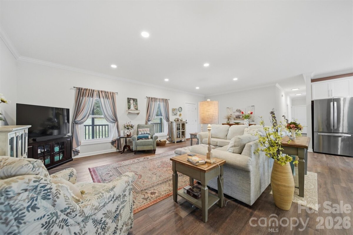 This delightful 3BR, 2 bath brick ranch style home is the perfect place to call your own! Enter from the covered front porch into the open concept floor plan. There is luxury vinyl plank flooring & a neutral color palette. The kitchen has abundant cabinets, large island with eat-at bar and granite counter tops. Move through French doors to the enclosed heated/cooled sunroom. Then walk out onto the expansive back deck and jump into the above ground pool or relax overlooking the fenced back yard. The primary bedroom has an en suite bath & the secondary bedrooms have a large bathroom in the hallway. The two car garage is oversized with plenty of room for storage. In addition there is a gravel circular drive for extra parking. Call for your showing today!