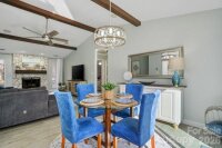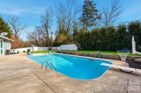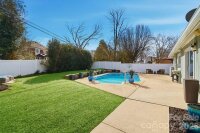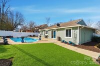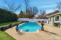 Vacation at Home! This gorgeous, modern ranch in sought-after Raintree offers the perfect blend of comfort, style, and resort-like living, complete with a saltwater inground pool. Designed with a split-bedroom floor plan, the home features a vaulted great room with a stunning wood-burning stone fireplace that opens to a sunny dining area overlooking the spectacular backyard. The beautifully updated kitchen showcases white shaker cabinetry, quartz countertops, a custom mosaic tile backsplash, under-cabinet lighting, and custom drawer pullouts, including built-in trash and recycling. An oversized sink with a custom cutting board overlooks the pool, and a convenient pass-through window makes outdoor entertaining effortless. Tile flooring runs throughout the main living areas, while the bedrooms offer plush carpeting. The spacious primary suite includes a ceiling fan and an expansive walk-in closet with an exceptional organization system. The spa-inspired primary bath features luxurious, modern finishes. The secondary bedrooms are generously sized with ample closet space and share a beautifully appointed spa-like bath. Step outside to your private backyard oasis and enjoy low-maintenance artificial turf and rubber mulch landscaping, giving you more time to relax and unwind. The saltwater pool has been meticulously maintained, includes a pool vacuum, and is kept running year-round by the current owners. In 2024, a new variable-speed pool pump and new cartridge filter were installed, adding efficiency and ease of maintenance. A gas tankless water heater adds efficiency. A new privacy fence was installed in 2024. Professional landscapers refreshed the front landscaping, new gutters and the exterior of the home was professionally painted in February 2026. A portion of the garage was enclosed to create the expansive primary closet, and the remaining space is currently used for storage. Conveniently located near shopping with easy access to 485 and zoned for award-winning schools. Raintree Country Club initiation is waived - membership is optional. Contact membership@raintreecc.net for details. Agent is related to seller.