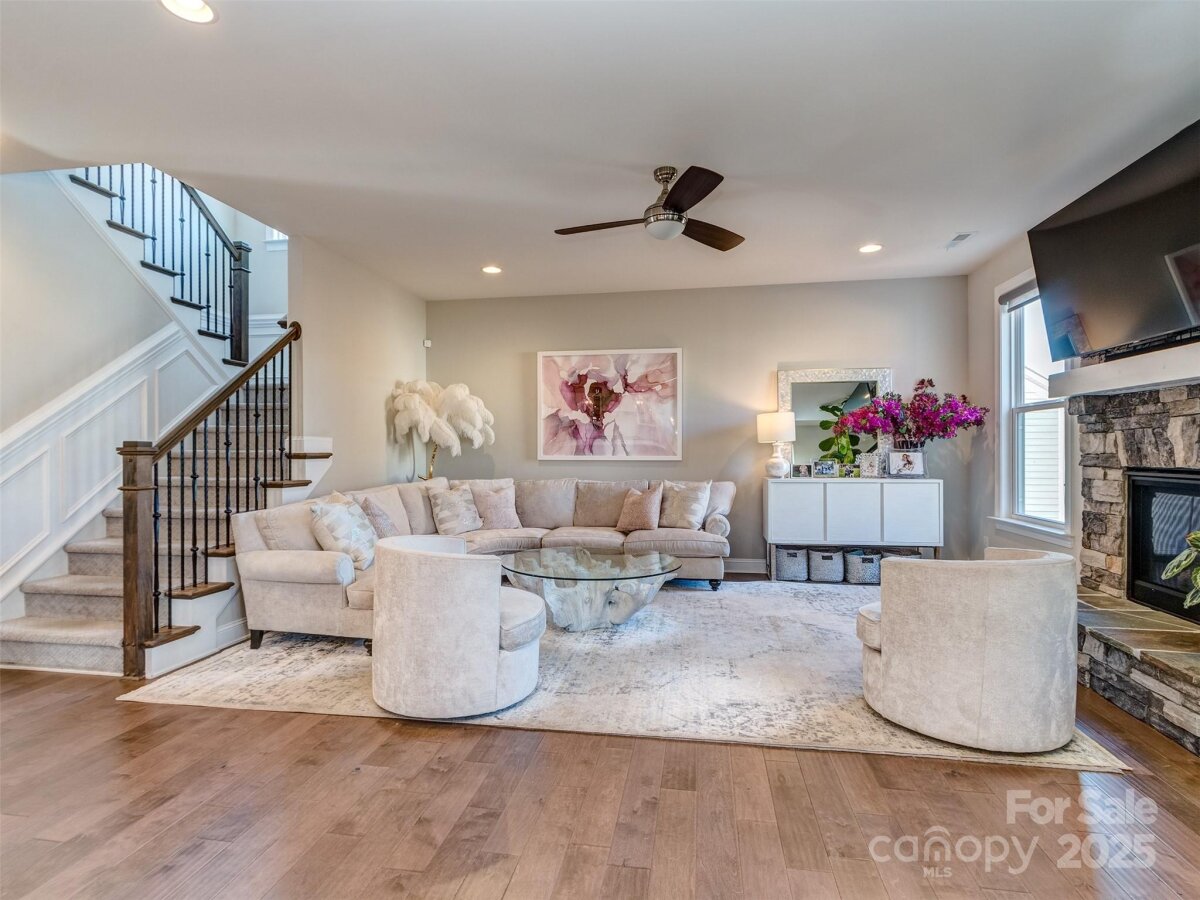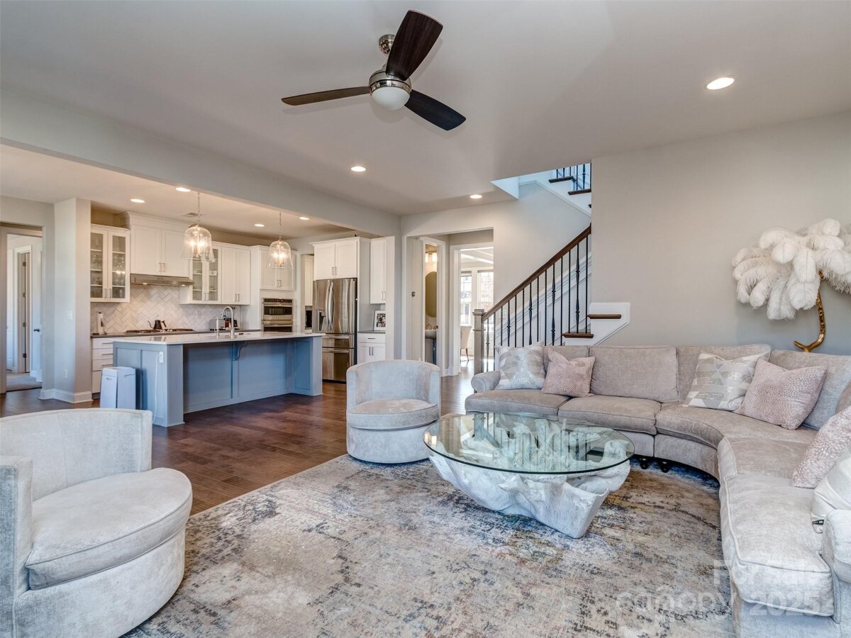 Don't miss this amazing opportunity to live in the lovely and well appointed home on a completely flat lot in the Huntersville community of Cobblestone Manor! The first thing you will notice is the welcoming Rocking Chair Front Porch where you will love watching the remaining leaves fall! The foyer has tray ceiling, wood floors, & is nestled between the Formal Dining Room & Home Office both of which have hardwood floors, custom roll down blinds, recessed lighting, crown molding, & wainscotting. Walk from the dining room through the Butler's Pantry to your luxury chef's kitchen! The kitchen features staggered white cabinets with crown molding, huge island, subway tile backsplash, gas cooktop, wall oven & microwave. It is open to the oversized Great Room & Breakfast Area! The great room features stacked stone gas log fireplace with hearth & mantle. It also has recessed lighting, custom roll down blinds, & tons of natural light! The main floor also features a full guest suite with private bath! The oversized primary suite is on the second floor & has crown molding, recessed lighting, & roll down blinds. The primary bath has dual vanities, large soaking tub, tiled walk-in shower, tile flooring, water closet, & HUGE walk-in clothes storage with a private door to the large laundry room. The 2nd floor also features 2 spacious guest rooms, a shared full bath, & a large bonus room that is perfect for a game room or home theatre. Did I mention that the back yard is completely flat? The covered deck overlooks the backyard and paver patio with firepit which is just a short walk from the community pool. The community is close to everything that you could possibly want to do within less than 10 minutes! Lake, Restaurants, Shopping, Nightlife, and more are all close by and ready for you to explore!