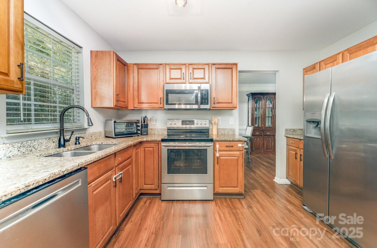 Welcome to 9824 Dauphine Dr, a beautifully maintained 4 bedroom home in the coveted Walden Ridge neighborhood (Northlake area). If you are looking for move in ready then this property delivers. It combines a desired location and a spacious layout that delivers multiple entertaining and living areas. The upstairs hosts all four bedrooms with a landing area, offering versatility for a home office, play zone, or media room. The backyard is private and this lot adds serenity in a market where outdoor space tied to privacy is increasingly rare. Community amenities include a sparkling pool and playground. Location offers strong convenience: easy access to I-485, near Northlake Mall, and the University area. Don't delay come see this one today.