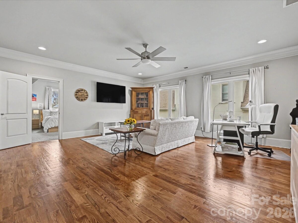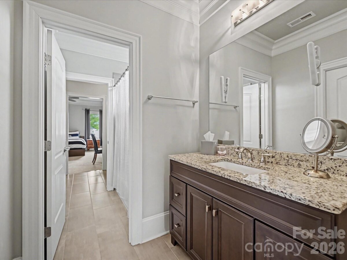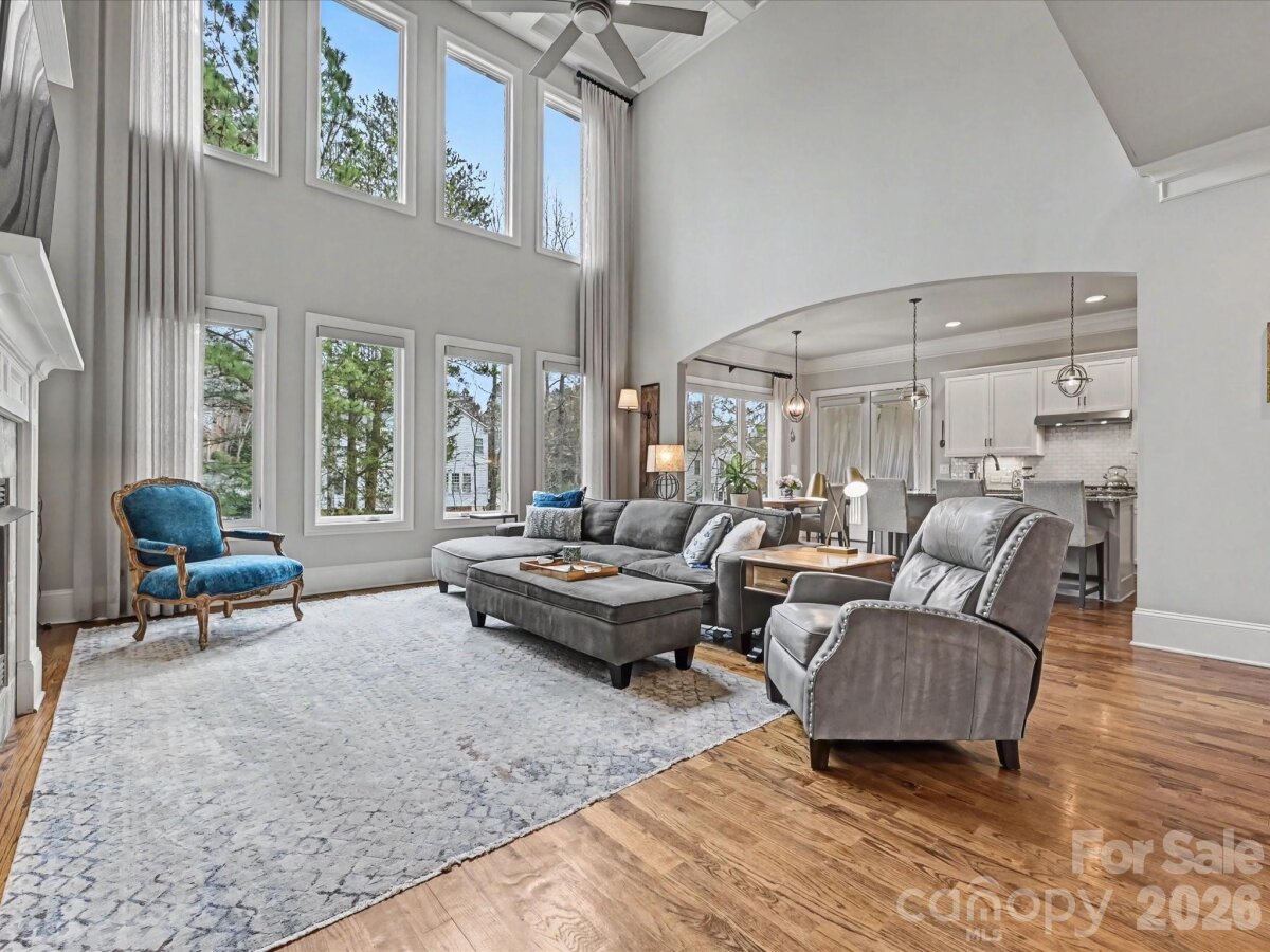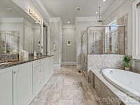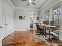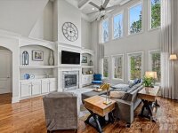 Tucked away at the end of a quiet wooded cul-de-sac that offers privacy and tranquility while being in the heart of south Charlotte! Inside, you are greeted by a dramatic two-story wall of windows fitted with custom drapes and allowing abundant natural light to flood your main living area and spill into the kitchen. The kitchen flows right out to the screened-in porch, making it easy to take dinner or morning coffee outside... and the outdoor grill is already hooked up to a gas line! The primary suite is located on the main floor, as well as the office and a full bath. Upstairs you’ll find three more generously sized bedrooms, and the best part, each bedroom has a bathroom! Need extra space? You’ve got options. There’s a large flex room upstairs that could easily be another bedroom, a playroom, media room, or the perfect hangout spot. Plus a little flex area off the kitchen that’s ideal for a home office, homework station, or cozy reading nook. Both the front and back yards have irrigation to keep everything looking lush without the extra work. Back inside, you’ll find thoughtful upgrades like an endless and on demand supply of hot water, thanks to a tankless water heater, custom crown molding, 10" baseboards, and a spacious laundry room that can actually handle real life. There’s even extra storage tucked under the screened porch for all the stuff you don’t want cluttering up the garage. All of this, plus it’s located near great schools, making it a fantastic spot to call home. Come take a look!