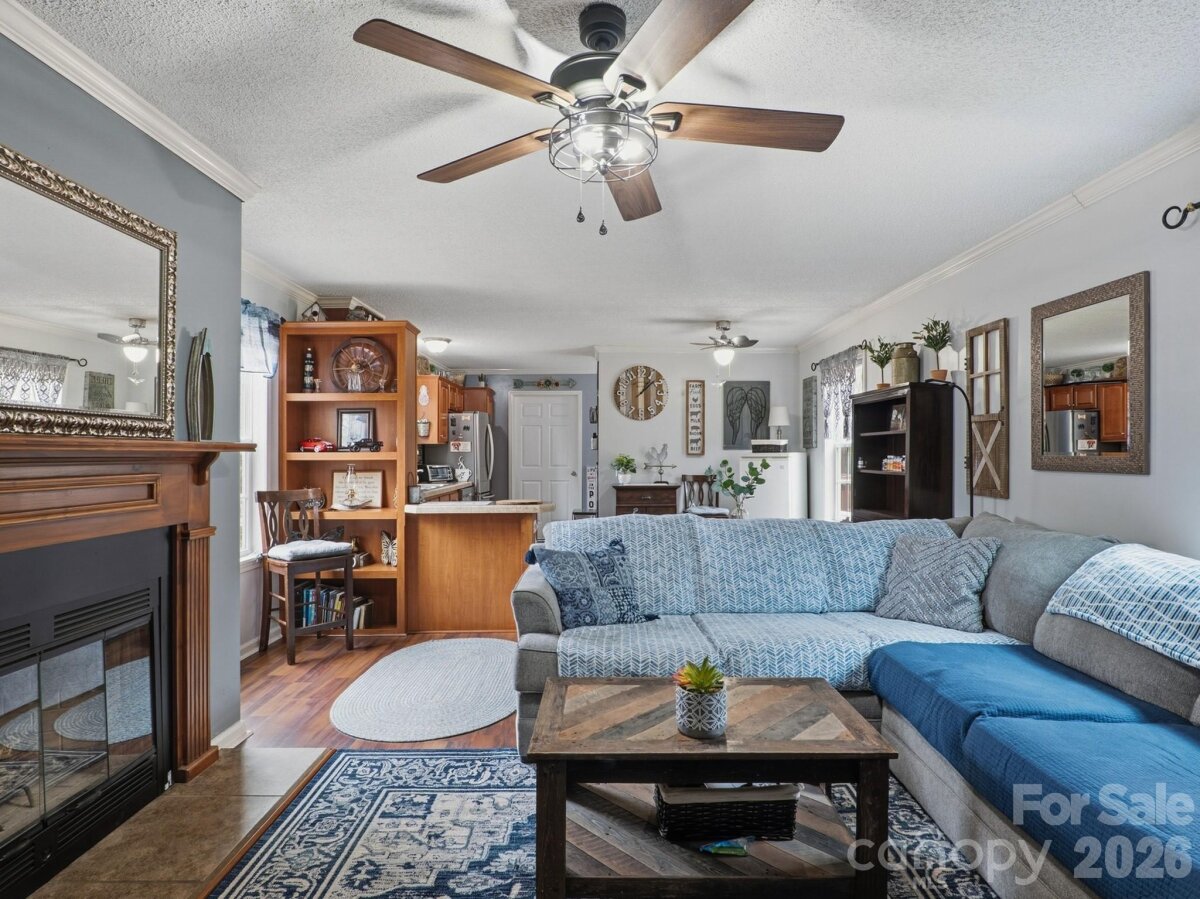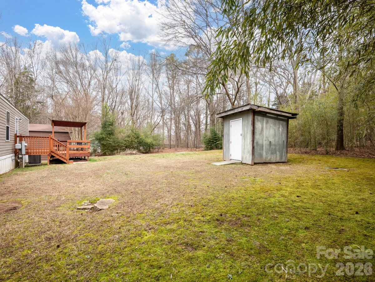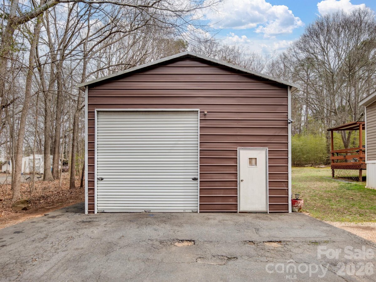 Charming 3-bedroom, 2-bath single-family home (manufactured residence) situated on a generous 1+ acre lot in the peaceful Southwinds community of Indian Land. Built in 2011, this open-concept residence offers approximately 1,166 sq ft of comfortable living space with laminate flooring throughout, wide doorways for accessibility, tape/textured drywall, and a cozy wood-burning fireplace as the focal point of the living area. The functional layout includes a ramp entry for easy access, making it ideal for comfortable everyday living. HVAC (2020), Newer Flooring (2020), Upgraded Electrical panel to Garage. New Well Filter Installed December 2022. Home includes a wired workshop/garage 16' height that is perfect for anyone who likes to work on cars/wood working or any other hobbies. Enjoy the privacy and space of country-style acreage while being conveniently located just minutes from Ballantyne, I-485, shopping, dining. Perfect for first-time buyers, downsizers, or those seeking a quiet retreat with room to grow. Don't miss this affordable opportunity in a desirable area!