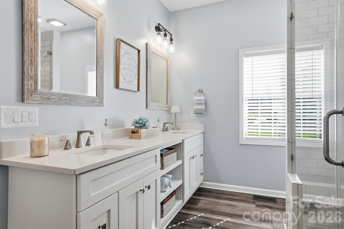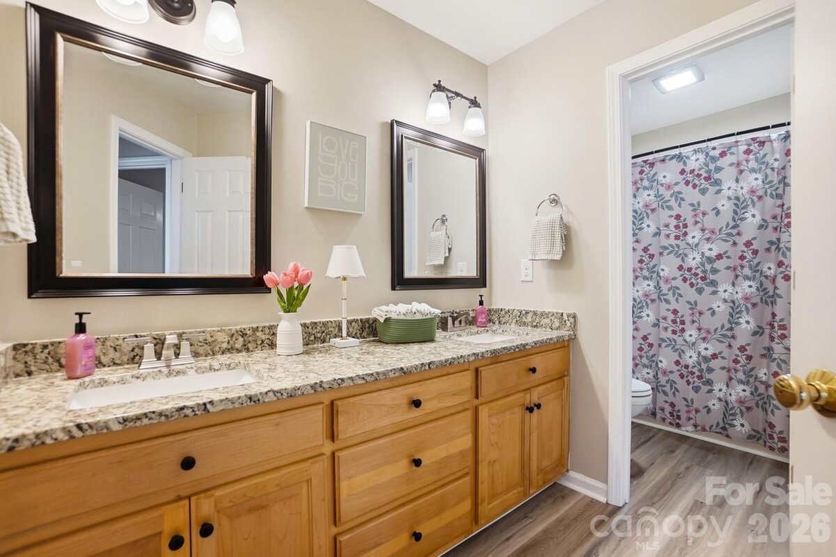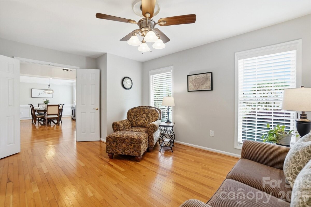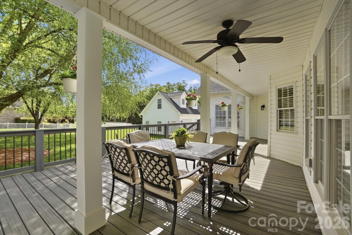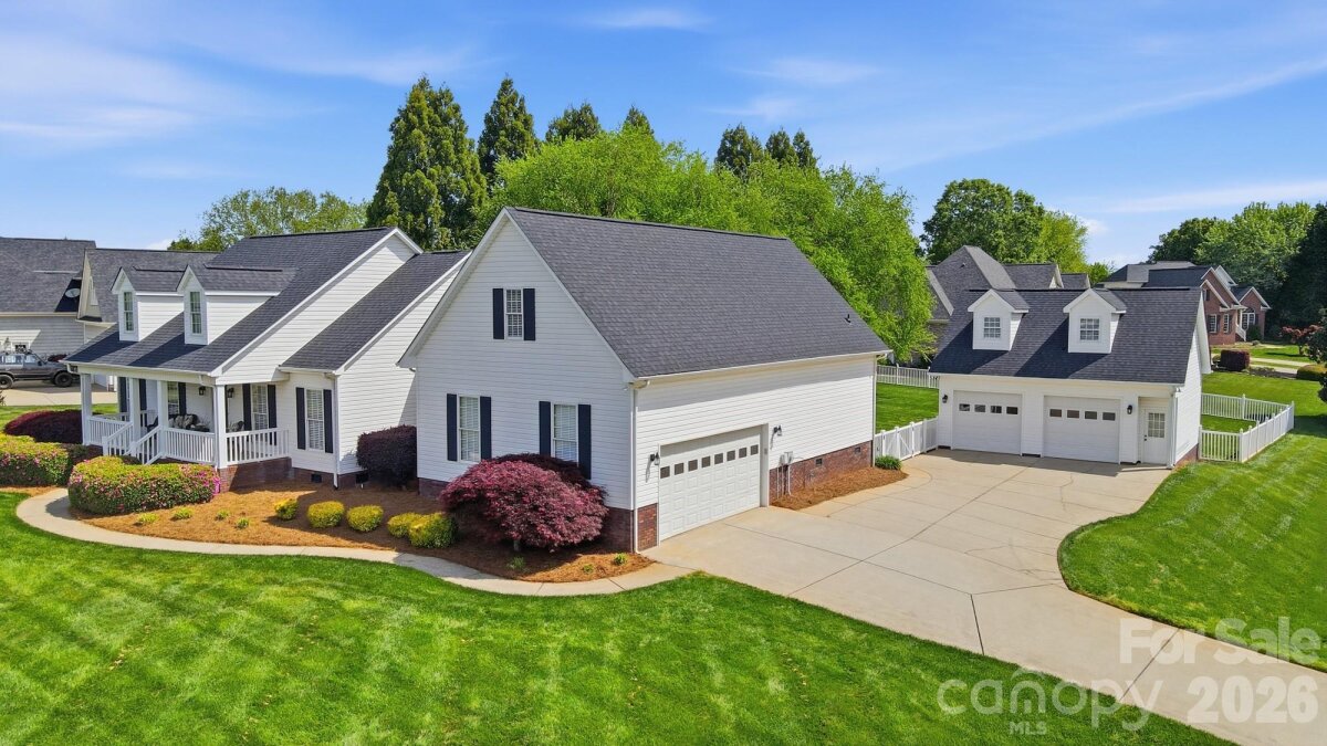 Welcome to this beautifully maintained ranch home, perfectly positioned on a spacious corner lot in the highly sought-after Cox Mill High School district. Thoughtfully designed with both comfort and functionality in mind, this home offers effortless one-level living with the added flexibility of a bonus room above. Inside, you’ll find a bright, open layout featuring hardwood floors throughout the main living areas and no carpet anywhere in the home. Vaulted ceilings create an airy feel, while the dedicated study, formal dining room, and inviting breakfast area provide the perfect balance of everyday living and entertaining space. The kitchen features solid maple cabinetry, granite countertops, and added under-cabinet lighting for a warm, modern touch. Even better, the kitchen refrigerator conveys along with the washer, dryer and an additional refrigerator in the garage - making your move-in that much easier. The spacious primary en-suite bathroom has been beautifully updated with quartz countertops, new cabinetry, LVP flooring, a custom walk-in shower, barn doors, and a thoughtfully designed closet featuring custom shelving. Additional upgrades include all-new interior outlets and switches (2024), new window blinds throughout, and durable LVP flooring in select areas including the stairs and bonus room. Step outside and enjoy your own private retreat—complete with a large Trex deck, paver patio with fire pit, fenced yard, and irrigation system—perfect for relaxing evenings or hosting gatherings. Car enthusiasts, hobbyists, or those needing extra space will love the oversized attached garage plus a detached two-car garage with a finished room above, ideal for a home gym, office, or guest space. Additional highlights include a new roof (2025), new hot water heater (2026), encapsulated crawlspace, floored attic storage, and extended concrete for extra parking. This home truly checks every box—style, space, and smart upgrades—all in a prime location. Don’t miss your opportunity to make it yours! Agent is owner/seller.
