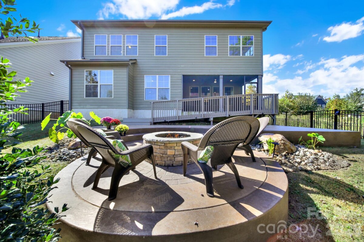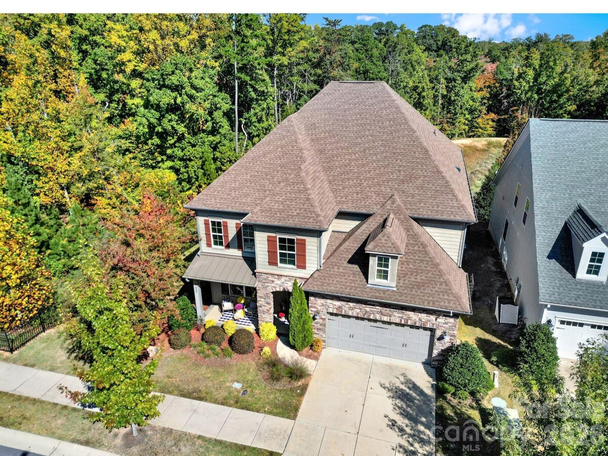 Prepared to be wowed! Open plan w lots of windows bringing natural light to gourmet kitchen w oversized island, 5 burner gas cooktop, double oven, stainless appliances, walk in pantry, open dining w sliding door leading to screened porch. The main floor offers private guest suite and full bath w zero entry shower, office, dining room, welcoming great room, stone fireplace, & flex space off great room for endless entertaining. Upstairs you will find 4 additional bedrooms, 3 full baths, loft, and a bonus/play room w closet and custom blackout shade for movie night. The primary suite features walk-in closet, oversized tile shower, w double shower heads, & custom motorized shades. Hardwoods on main level, tile baths, & carpet upstairs replaced on 2024. Customs shades in all bedrooms. Extensive hardscape/landscaping, gas fire pit, very private yard, w irrigation and water feature. Community offers clubhouse, pool, 2 play grounds, 2 ponds, walking trail, & walk-able to dining options. Welcome home!