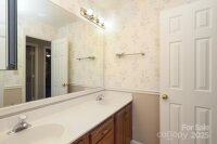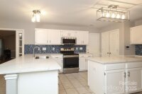 Welcome to this elegantly appointed all-brick residence in the highly desirable Colvard Park neighborhood, offering four bedrooms, two and a half baths, and main-floor living in a serene, park-like setting. Enter through a gracious two-story foyer, leading to the living and dining rooms with new hardwood floors and French doors. The kitchen showcases an abundance of storage, generous counter space, walk-in pantry, and thoughtful updates including new quartz countertops, refreshed cabinetry with updated hardware, new sink and faucet, induction range, and stylish tile backsplash. The adjacent breakfast room with breakfast bar opens to a newly constructed two-level deck, complete with convenient pet ramp. The main-floor primary suite features vaulted ceilings and a custom California Closets walk-in closet. The primary bath has been updated with new quartz countertops, separate tub and shower, and bidet. Additional main-floor living spaces include a great room with vaulted ceiling, gas fireplace, and French doors opening to the outdoor living area. Comprehensive updates throughout include new interior paint, lighting fixtures, ceiling fans, window treatments, plantation shutters, tankless water heater, whole-house water filtration system, walk-in attic access, new vapor barrier in the crawlspace, and a convenient dog washing station in the two-car garage. The neighborhood itself offers exceptional appeal with direct access to Clark's Greenway just steps away, a community green space, and gathering gazebo. Location provides easy access to I-85, I-485, I-77, and Charlotte's Innovation Park, with excellent shopping and dining nearby—Concord Mills (10 minutes) and Trader Joe's (5 minutes).