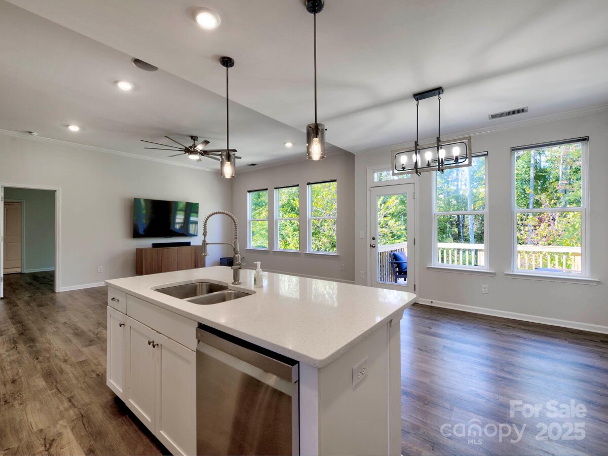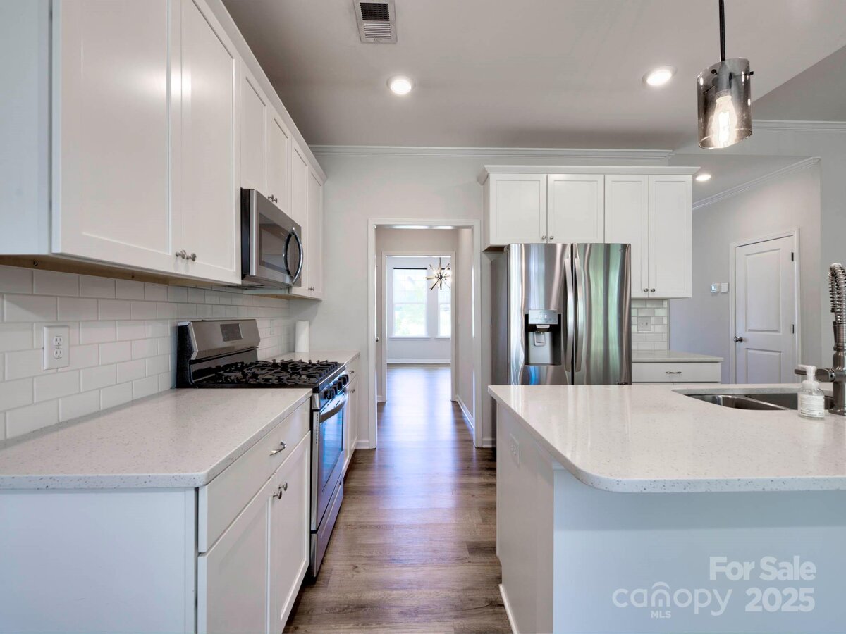 ASSUMABLE 2.875% VA MORTGAGE! Fantastic 4 bedroom ranch with basement in sought after Vermillion! This like new ranch plan is open and bright with all the upgrades and extras you could want in your next home. These original owners have spared no expense in making this home a living dream! Some of the many extras and upgrades included in the listing are as follows: 7.5 foot deep front porch, keyless entry to an open floorplan with split bedrooms, 2 on the main level and 2 in the basement. The sellers have installed a custom ELFA metal shelving system throughout the entire home. Pull down shades on the first floor, bedroom 2/office on the main level features built-in ceiling speakers and adjustable custom shelves in the closet. The dining room has an upgraded light fixture and a trey ceiling. Crown mouldings throughout this home. The mud room features ceramic tile floor, custom shelving and includes a full size LG WASHER AND DRYER THAT REMAINS! The awesome garage is sheetrocked and painted and has Newage cabinets with a work bench, pull down stairs to the attic for storage and custom storage installed above the garage door. The kitchen/breakfast/family room is open and provides much light. The kitchen has quartz countertops, stainless steel appliances including a double door REFIGERATOR THAT REMAINS. There is also a stainless steel oven with a gas cooktop, upgraded faucet, a double stainless steel sink and pendant lights. The family room has surround sound and a 75 INCH TV THAT REMAINS! The double door pantry has awesome custom metal shelving with spice pull outs and pull out shelves. Luxury plank flooring covers most of the main level as well as ceramic tile in the laundry room and primary bathroom. The main level also features the primary bedroom with a trey ceiling, paddle fan, a walk-in closet with incredible custom adjustable shelving. The primary bathroom has cermaic tile floor and shower, raised heighth vanity with double sinks and quartz countertops as well as a 2nd walk-in closet. The 1/2 bath features marble countertops. The fully finished basement offers bedrooms 3 and 4 also have ELFA custom metal shelving in the closets and share a 2nd full bath with ceramic tile floor, a tub/shower combination and quartz countertops.There is storage under the staircase which features iron ballasters. The bonus room in the basement features a home theater including a digital projector, a 7.2 Dolby amos theater speakers and a 120 INCH SCREEN THAT ALL REMAINS! Also has a door that goes to a covered patio area. Dual zone, 2 unit, GAS HVAC comes with this home, All located in fabulous Vermillion, one of the most upscale and convenient neighborhoods in Huntersville, with homes ranging up to over one million dollars! Close to great schools, shopping, and churches. Vermillion features many amenities including Club House, Outdoor pool, Street lights, Tennis courts, Sidewalks and Walking trails. Close to great schools, shopping, and churches, Vermillion is super convenient to both I77 and I85, both of them less than 15 minutes away. Call to schedule a private tour of this incredible home before it sells out from under you! Assumable VA mortgage balance is $280,000.