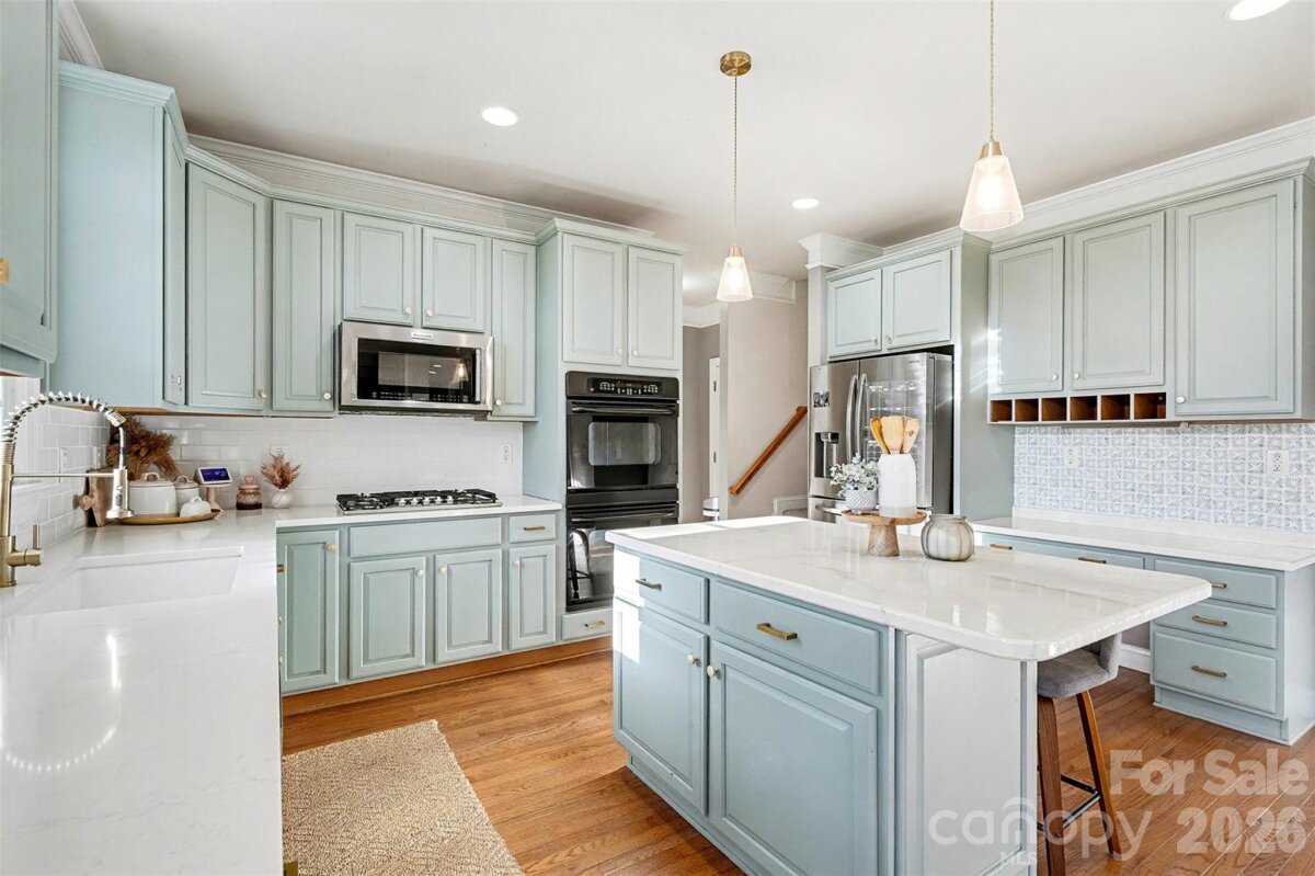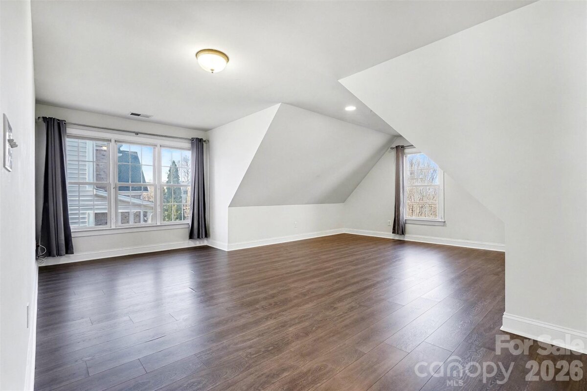 Spacious Highland Creek home located on the desirable Cabarrus County side near the Sports Club, amazing location! Situated on a quarter acre lot, this home offers a beautifully landscaped backyard with a large deck and a paved patio with sitting area, perfect for outdoor entertaining. With over 3,400 square feet of living space, this home includes 5 bedrooms and 3 full bathrooms, plus a dedicated office on the main level, dining room, breakfast area, large laundry room, and upstairs bonus room. The main floor features wood flooring and a two-story family room with fireplace, creating an open and inviting atmosphere. In the kitchen, you will find a double oven, gas range, newer stainless-steel fridge, dishwasher, microwave, and sink and a convenient breakfast area. Upstairs, there are 4 additional bedrooms including the primary with a decorative tray ceiling, primary bathroom with large soaking tub and walk in closet, a large bonus room great for a playroom, workout space, or craft room, Luxury Vinyl Plank flooring on upper level, and the convenience of two separate staircases. Generous room sizes and flexible spaces provide plenty of options! HVAC new in 2023, tankless hot water heater added, brand new backsplash in kitchen, home and driveway freshly pressure washed and more! Conveniently located close to Concord Mills, Uptown Charlotte, dining, shopping, and highways, this home offers both space and an unbeatable location.