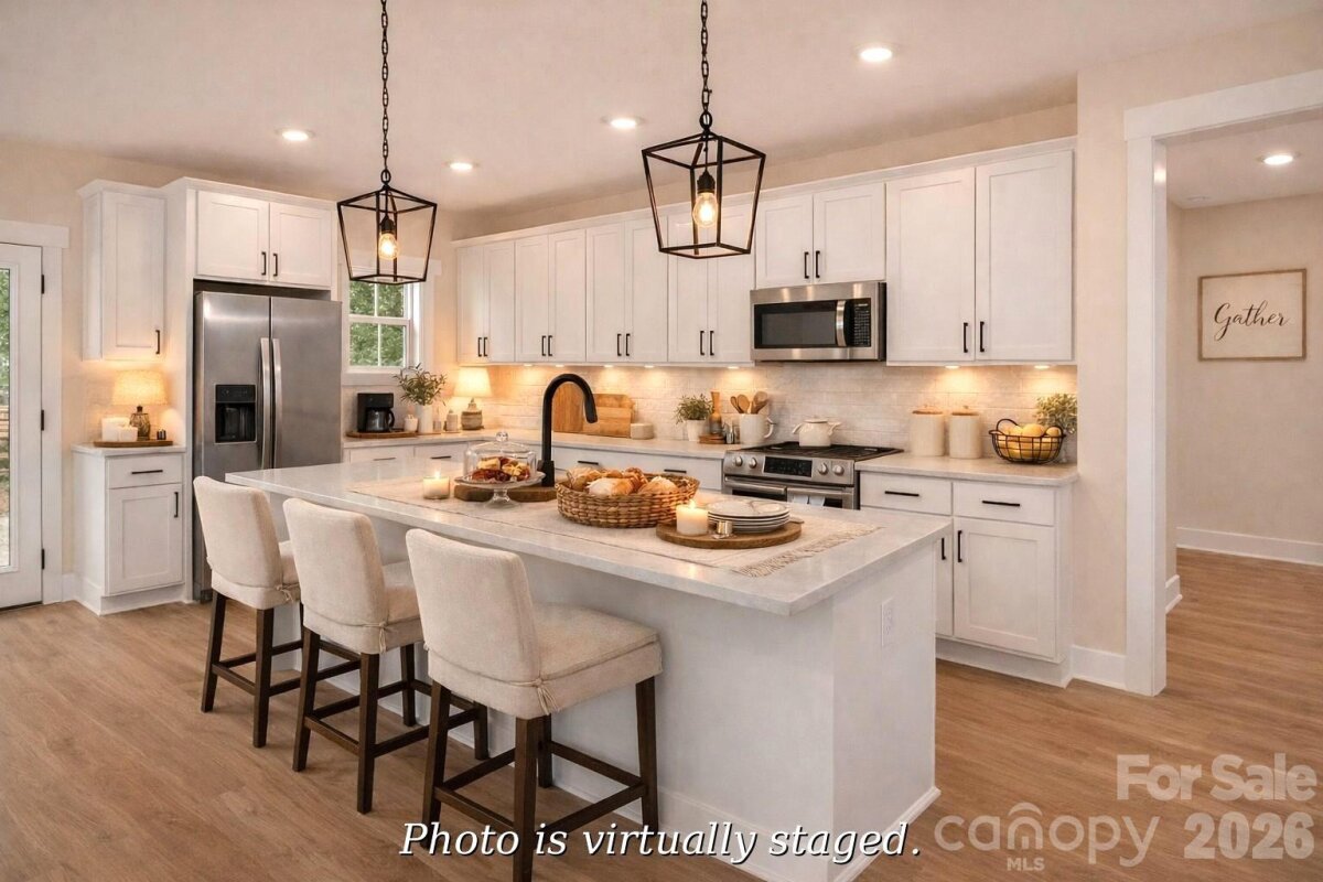 Ready in about a week. Custom Modern Farmhouse with Craftsman influences tucked on a quiet street. This beautifully designed home offers a bright, open floor plan ideal for both everyday living & elegant entertaining. Featuring 5 spacious bedrooms plus a bonus room/office. The layout provides exceptional flexibility for modern lifestyles. At the heart of the home is a stunning gourmet kitchen with an oversized quartz island, stainless steel appliances, tile backsplash, and pantry—perfect for gathering and entertaining. The spacious Den filled with natural light & luxury LVP flooring creates a warm yet sophisticated living space. Throughout the home find luxury LVP flooring, & stylish tile finishes that add both beauty and durability. Step outside to 250 square feet of Deck space, ideal for outdoor dining, relaxing, or entertaining guests. The main-level primary suite offers a private retreat with His & Her closets and spa-like comfort in the main bath with walk-in tiled shower & dual vanities. A 2-car garage with double driveway provides ample parking and storage, while the welcoming covered front porch adds classic charm. Crawlspace has an area for extra storage. The drop zone when you walk in from the garage is a great feature. Located in the quaint town of China Grove, just minutes to Highways 150, 152, I-85, & 29, and conveniently positioned between Kannapolis, Concord, and Mooresville. Enjoy nearby parks, the Y with indoor pool & fitness facilities, and The Warrior Golf Course just 5 minutes away. Downtown China Grove in 3 minutes with local restaurants, brewery & shops. Wonderful schools with China Grove Elementary, China Grove Middle & South Rowan High. Designed for gathering, entertaining, and comfortable luxury living, this exceptional home truly stands apart. (This home is virtually staged.)