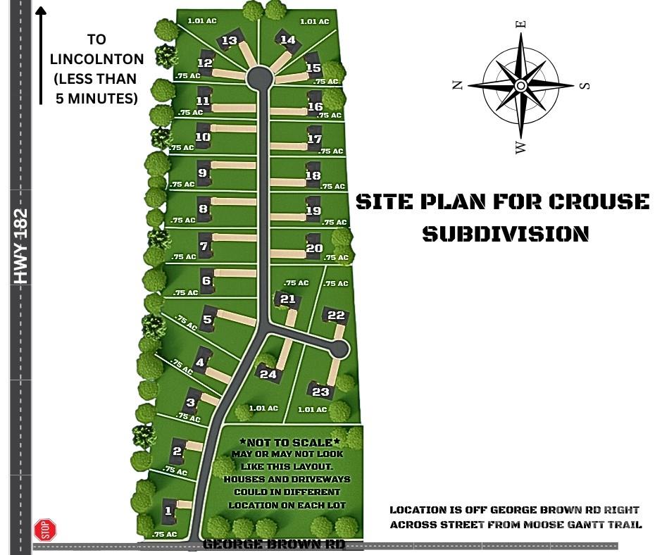 If you are looking for a brand-new home, YOU MUST see these ALL-BRICK CUSTOM Homes in person! In the heart of Lincoln County waits a custom brick masterpiece! Thoughtful design and comfortable luxury where meticulous craftmanship meet comfortable living. This home is a testament to attention to detail, offering a haven of tranquility and charm. As you step inside; you'll find yourself enveloped in a world where every detail has been carefully crafted for a truly exceptional living experience. The moment you enter, the thoughtful design of this home becomes evident. An open floor plan seamlessly connects the living spaces, creating a sense of flow and cohesion. The heart of this home lies in its stylish kitchen, modern appliances, ample counter space and tasteful finishes make it a chef's dream. One of the highlights of all these homes is the screened in porch, these outdoor sanctuaries invite you to unwind and enjoy the fresh country air in a setting of unparallel tranquility. Known for its close-knit community and scenic surroundings, provides a serene backdrop for this home. 24 Lots (at least .75 acre) lots available in this brand-new subdivision, some lots are one acre (approximately). Choose any lot and floor plan. Photos in this listing and the other listings are photos of other homes builder has built already. All photos represent the quality of these homes. Customize how you like, choose your brick color, shingles, trim, wall color, bathroom tile, all cabinet colors and floor colors, etc. Street and parcel # will change once road is put in and addresses are assigned. From Lincolnton, travel 27 West through town, left onto Hwy 182, approximately 3 miles, left onto George Brown Rd Crouse, neighborhood is on left, you will see sign. These homes will not show up in GPS as of list date. To locate this new subdivision using GPS type in 947 George Brown Rd. Crouse NC. This address is a church beside the new development, Subdivision is right in front of Moose Gantt Trail, Crouse